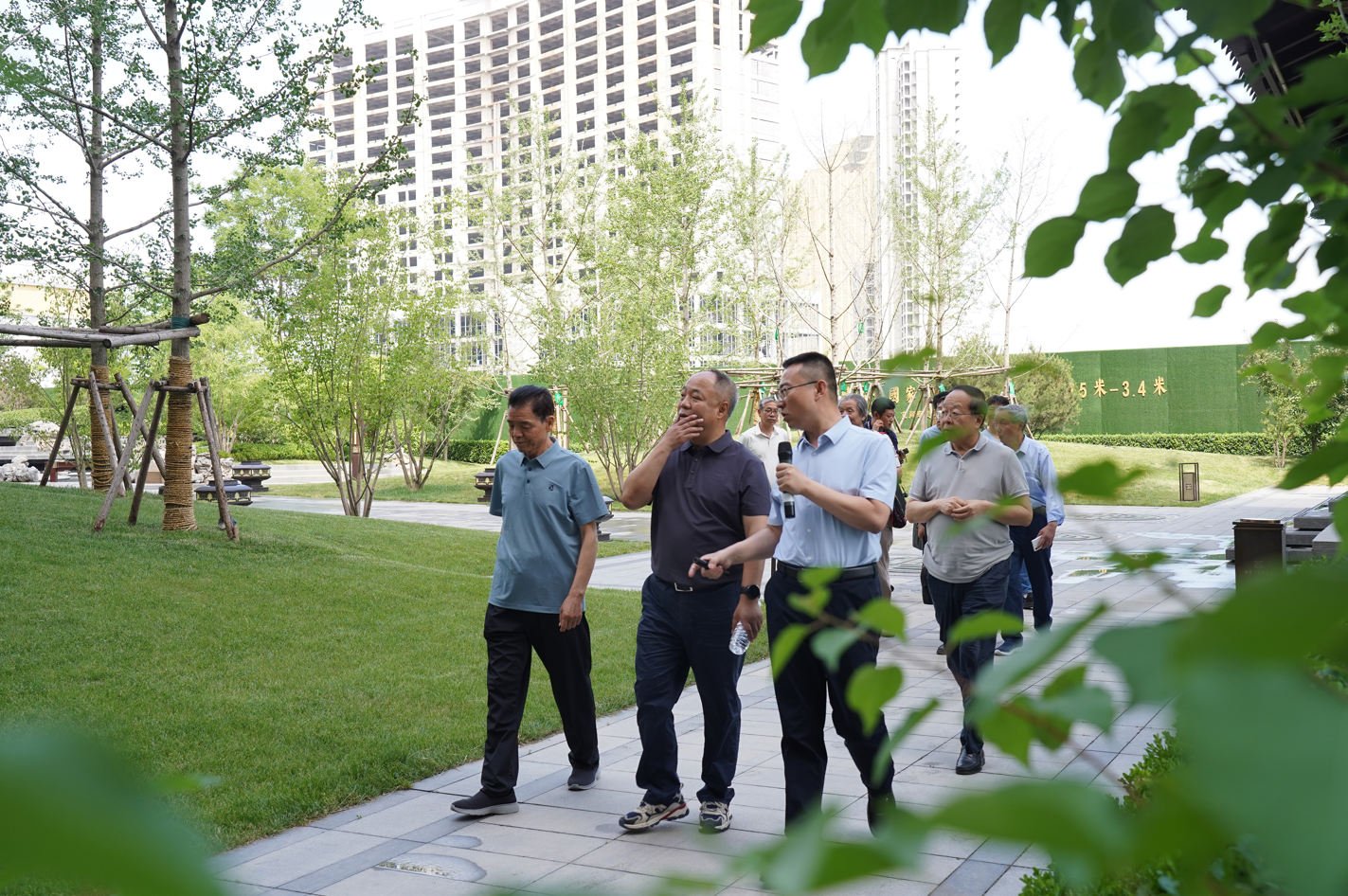 劉忠森對母校領導、教授及恩師蒞臨西建集團表示熱烈歡迎。隨后,在劉忠森的帶領下,董校長一行參觀了西建·天茂國賓府小區建設情況,并于國賓府會議室召開座談會。