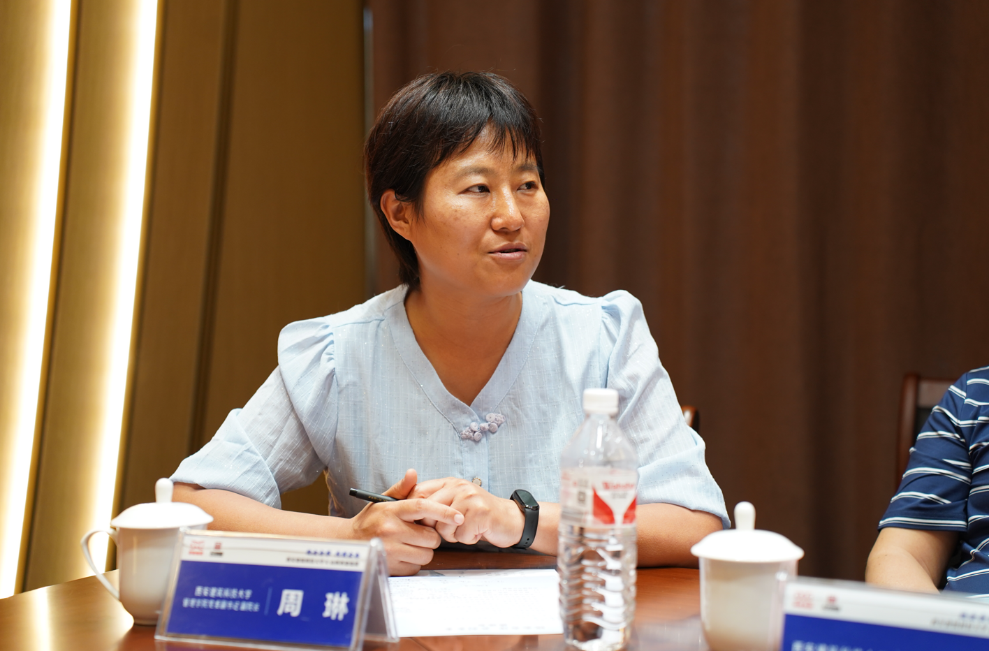▲西安建大管理學院黨委副書記、副院長周琳(右一)