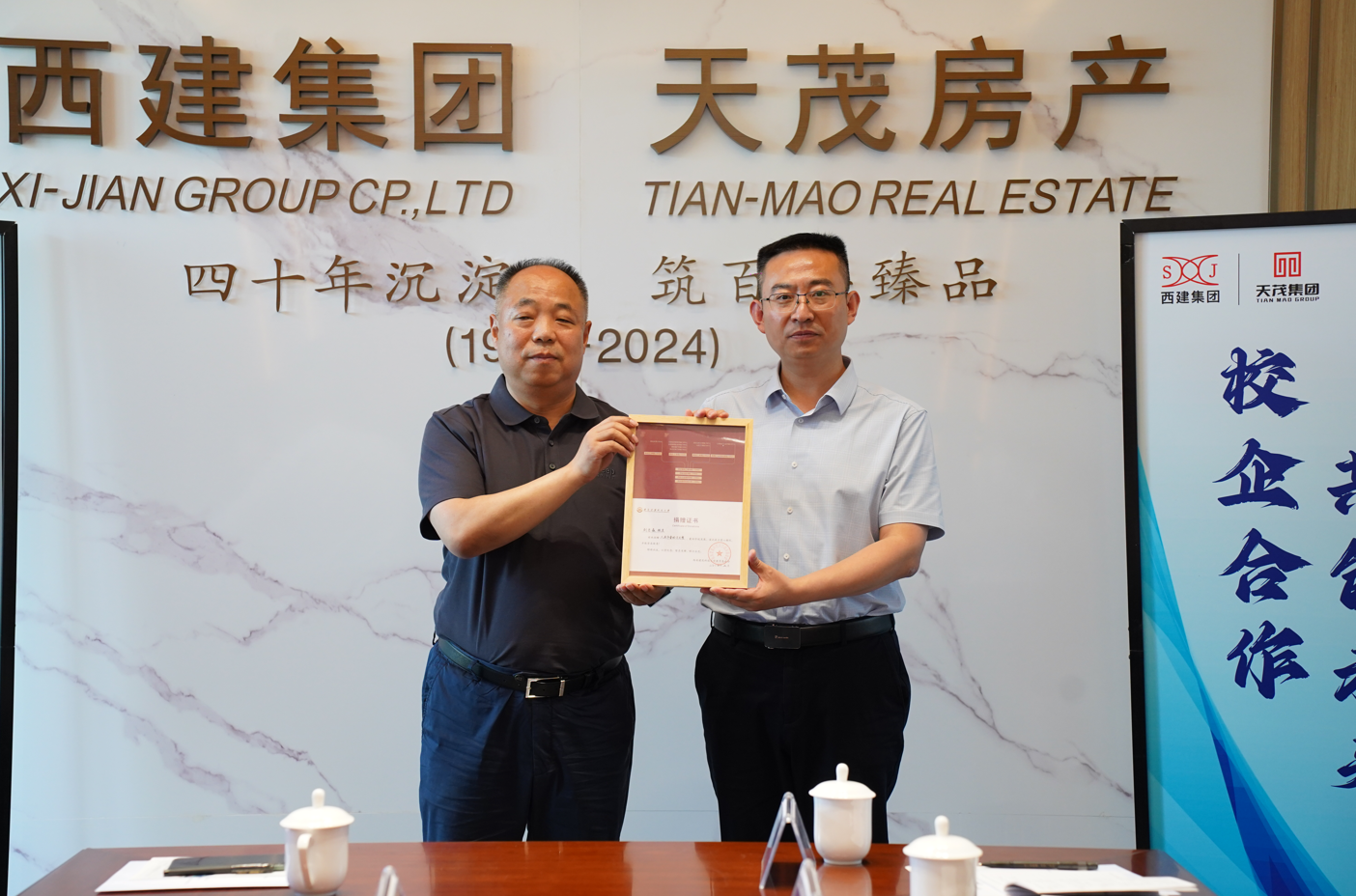 最后,西安建筑科技大學領導為劉忠森及西建集團頒發證書、錦旗、及牌匾。